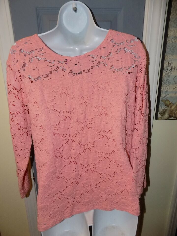 Peck & Peck Peach Eyelet Shirt With Attached Cami Size XL