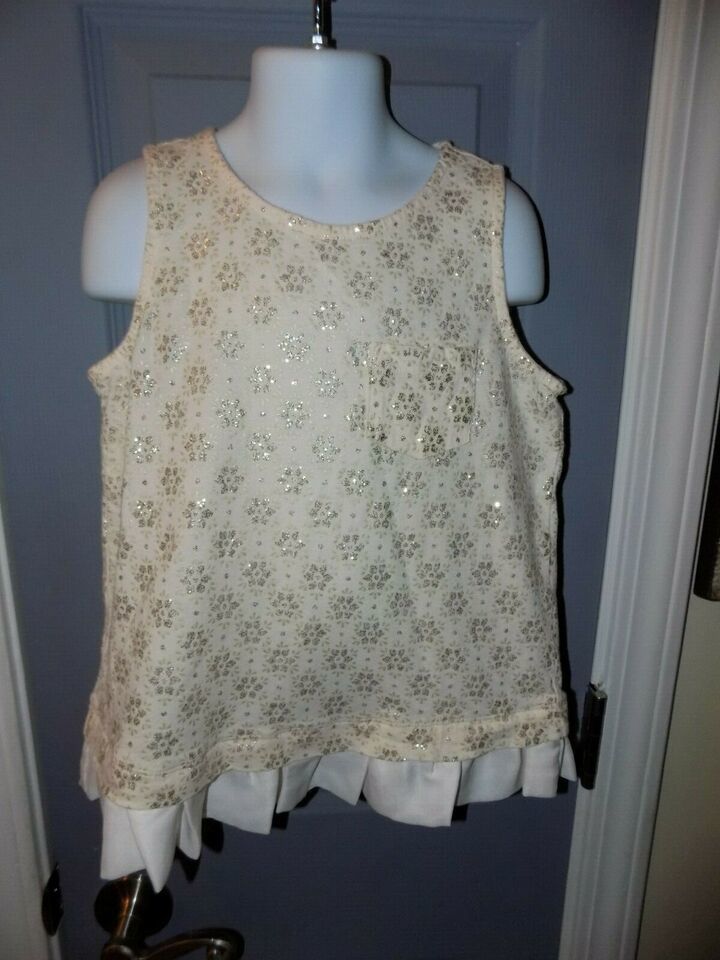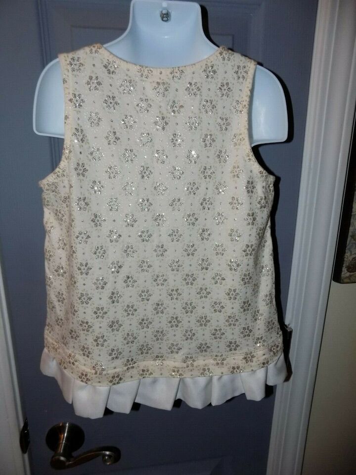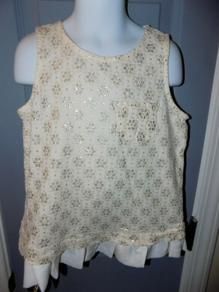 Crewcuts Off White Snowflake Glitter Print Swing Tank Top Ruffle Hem Size 8 NWOT