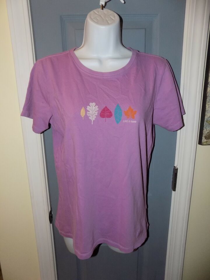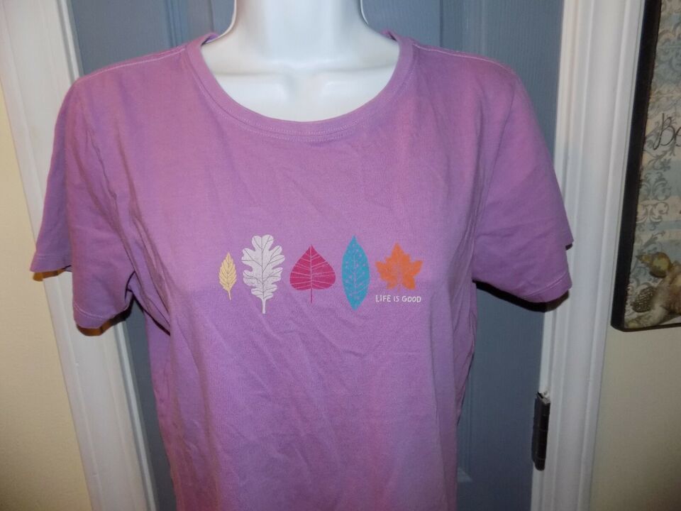 Life Is Good Purple Short Sleeve Crusher Leaf Print T-shirt Size S Women's EUC