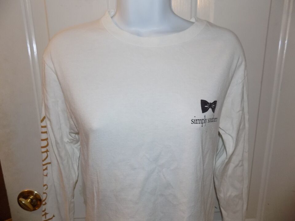 Simply Southern White LS T-shirt South State of Mind Black Gold Size S Women's