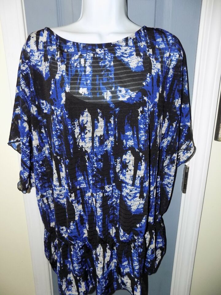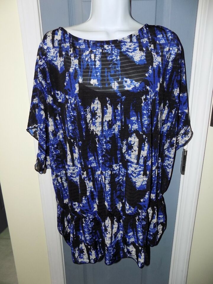 MADISON Blue/Black/White Striped Printed Blouse W/Tank Size XL Women's NEW