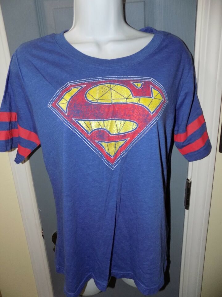 DC Comics Superman Symbol Jersey Style Blue T-Shirt Size XL Women's EUC