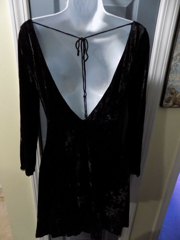 Free People Black Kat Faux Wrap Velvet Mini Dress LS Size S Women's NEW
