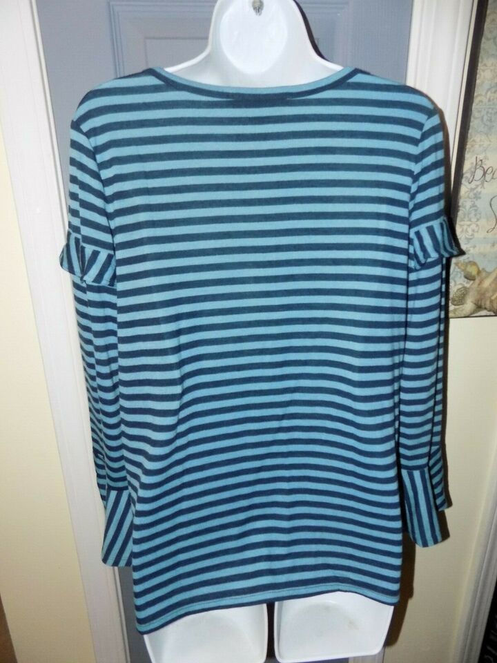 LOFT Blue Stripe Long Sleeve Ruffle Bell Stretch Pullover Shirt Size S Women's