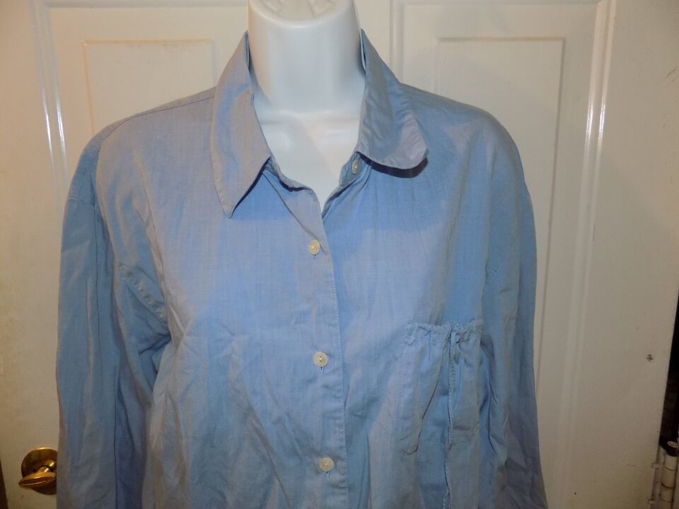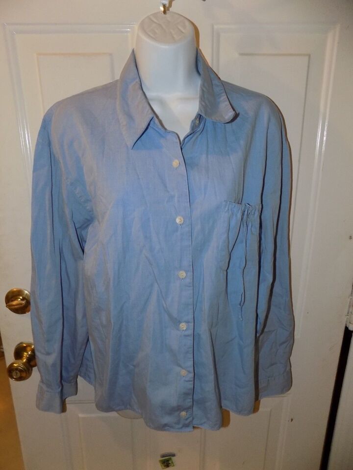 J Jill Blue Button Down Long Sleeve W/Pocket Shirt Size L Women's EUC