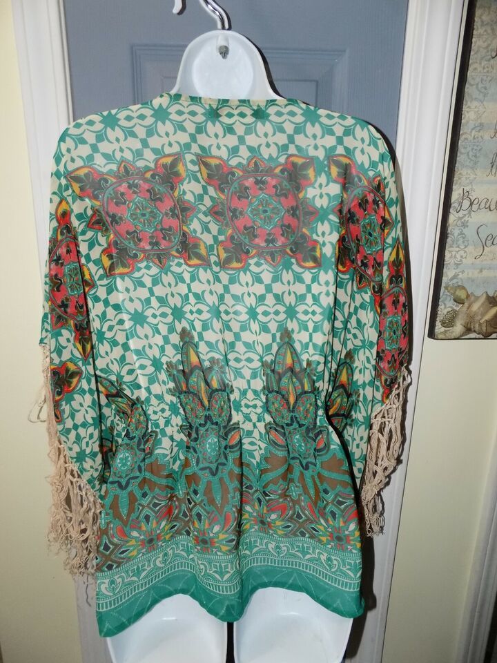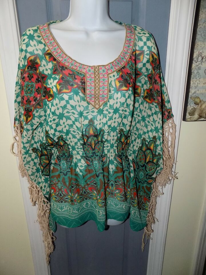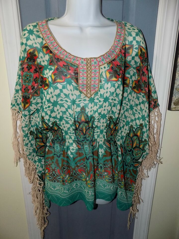 Flying Tomato Multi-Colored Printed Fringe Boho Top Blouse Size M Women's NWOT