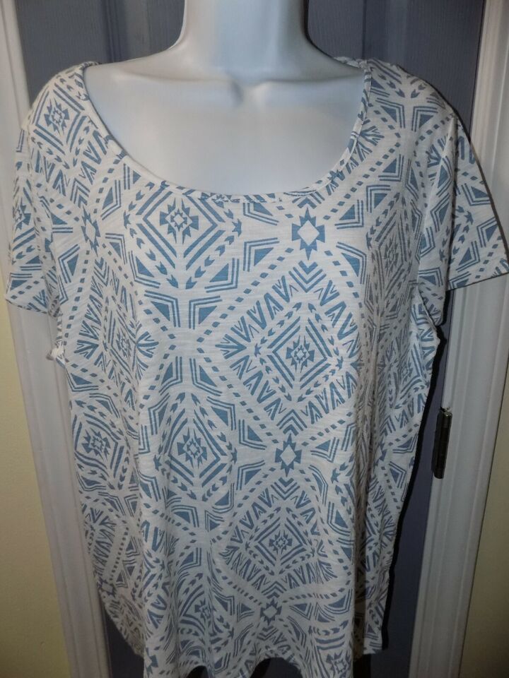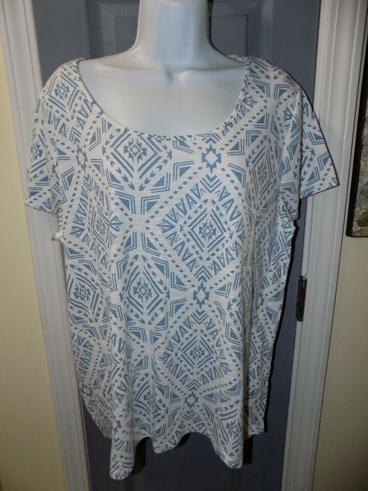 Cato Blue & White Aztec Design Short Sleeve Shirt Size XL Women's EUC