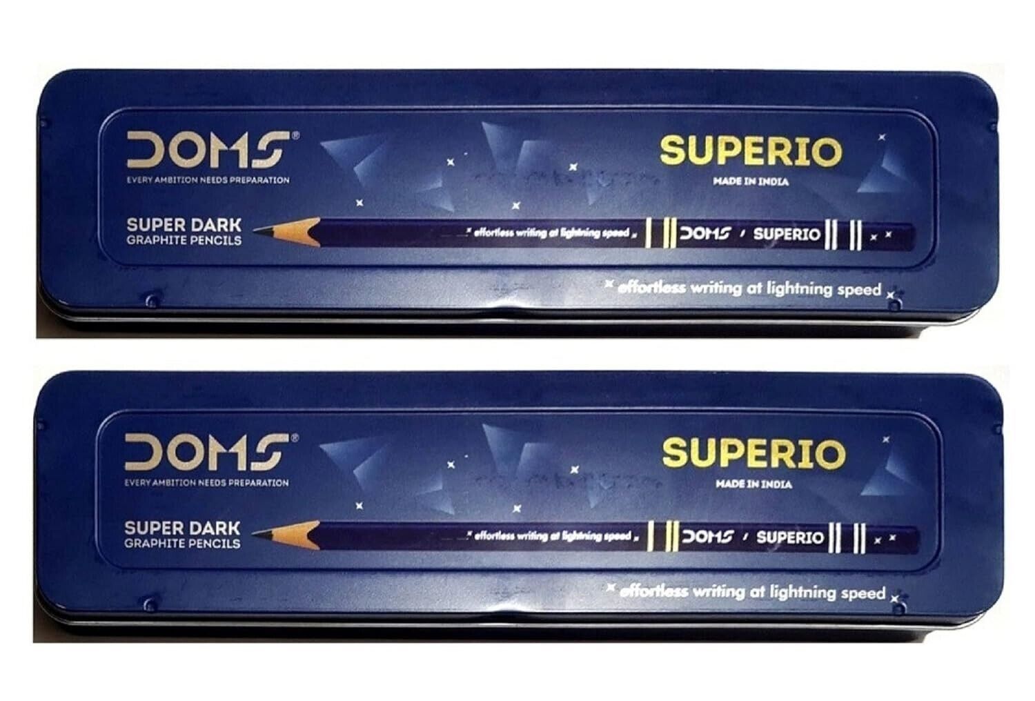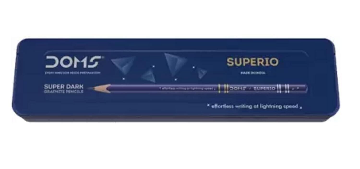 Package Includes - DOMS Superio Super Dark Graphite Pencils Tin Box, Pack Of 10 and each box contains