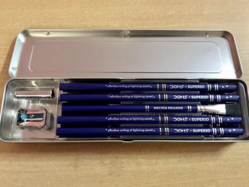 10 Box X Doms SUPERIO super dark Graphite 10 pencils sharpener eraser in Tin Box