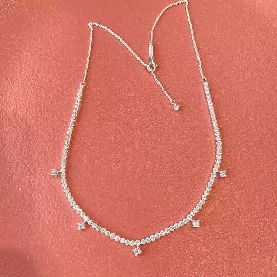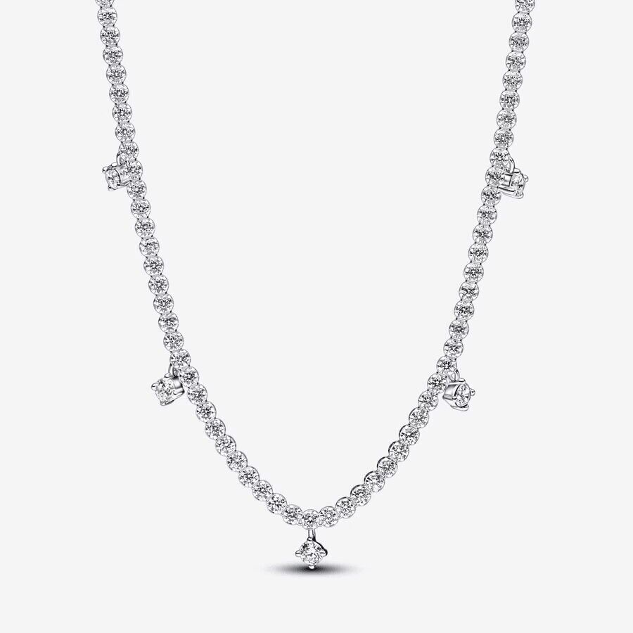 Sterling Silver Sparkling Drop Collier Necklace Woman Jewelry 43CM Adjustable