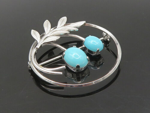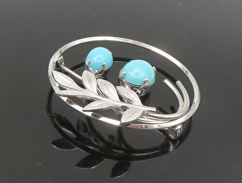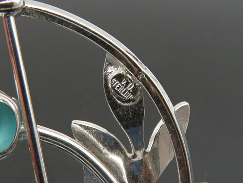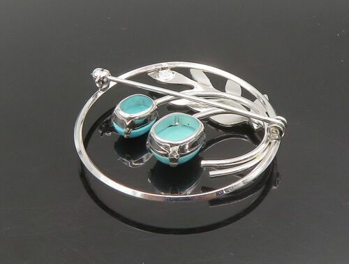 VAN DELL 925 Sterling Silver - Vintage Turquoise Floral Brooch Pin - BP9341
