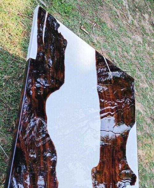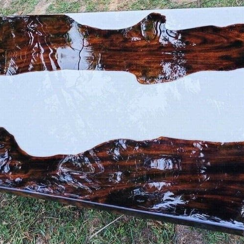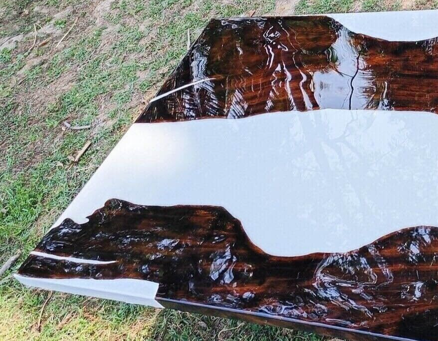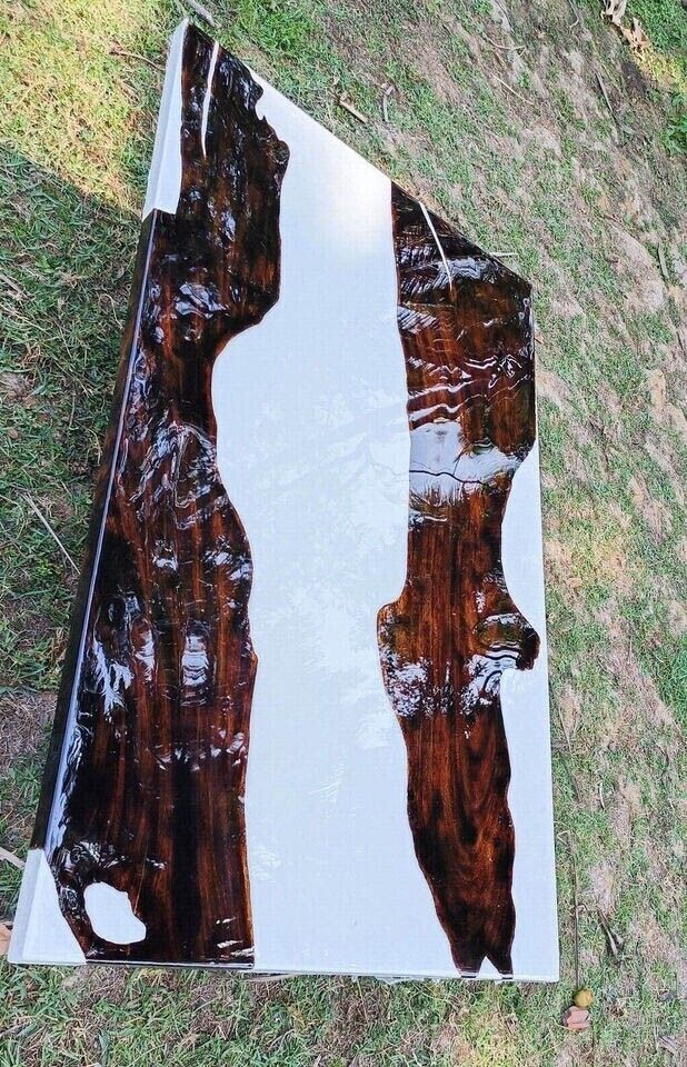 Our epoxy tables are custom-made, and we strive to use the same type of wood as depicted in our advertising pictures. However, it is not always possible to find an exact match, which may result in slight variations in the epoxy color and wood grain pattern.