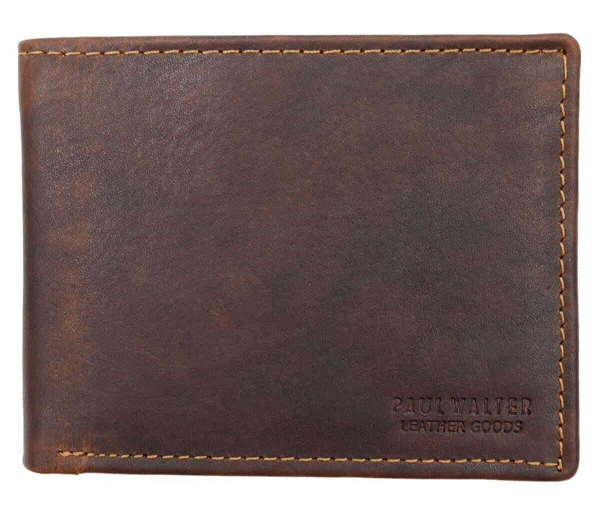 Paul Walter - RFID Blocking Brown Vintage Leather Men's Bifold Center Flap Wallet