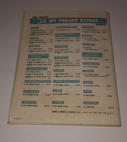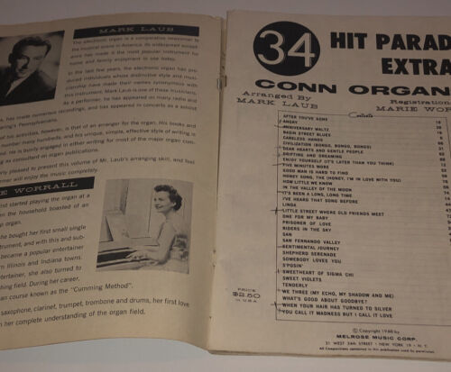34 Hit Parade Extras Conn Organs 1960 Vintage Music Sheet Book Melrose Music.