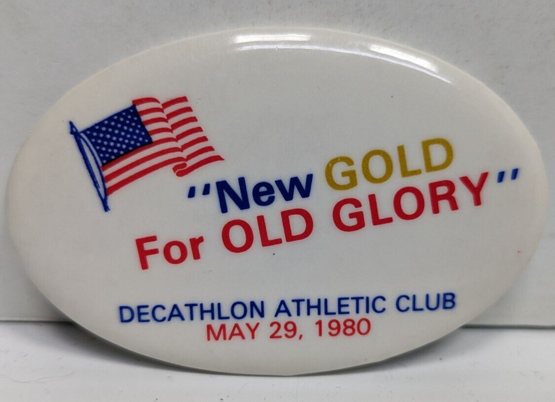 Vintage "New GOLD For OLD GLORY" - Decathlon Athletic Club MN Pin Button Pinback