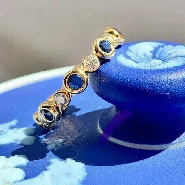 2Ct Round Lab-Created Sapphire Women's Wedding Band Ring 14k Yellow Gold Plated