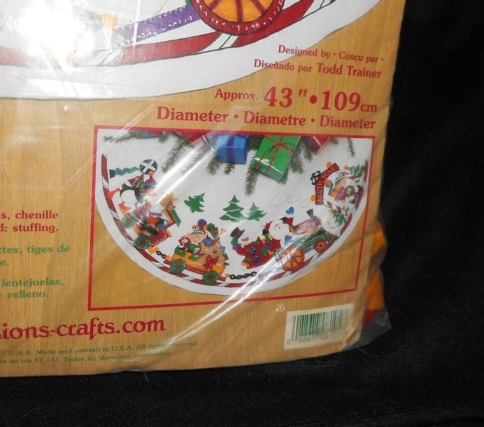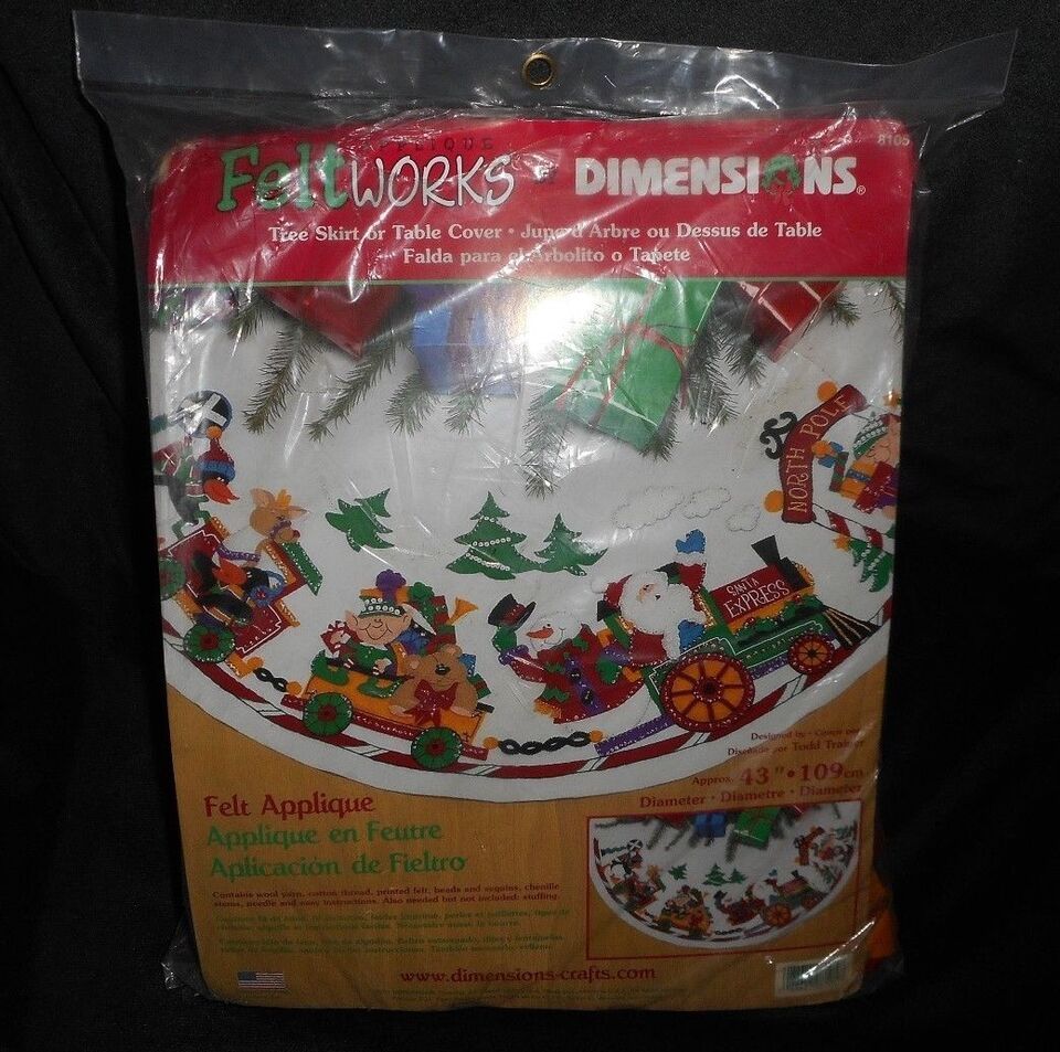 NEW VINTAGE FELTWORKS DIMENSIONS 43" ROUND SANTA TRAIN CHRISTMAS TREE SKIRT 8105