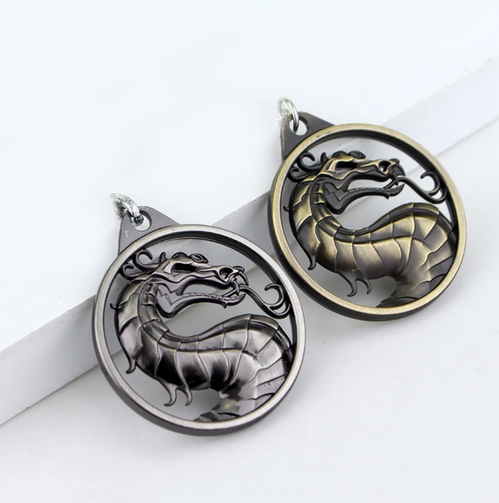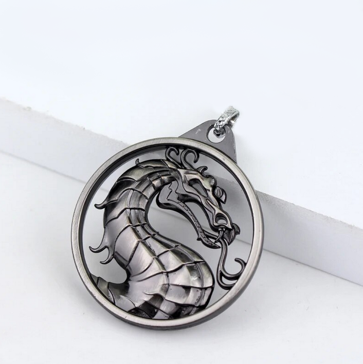 Men's Vintage Mortal Kombat Game Dragon Reversible Pendant Necklace
