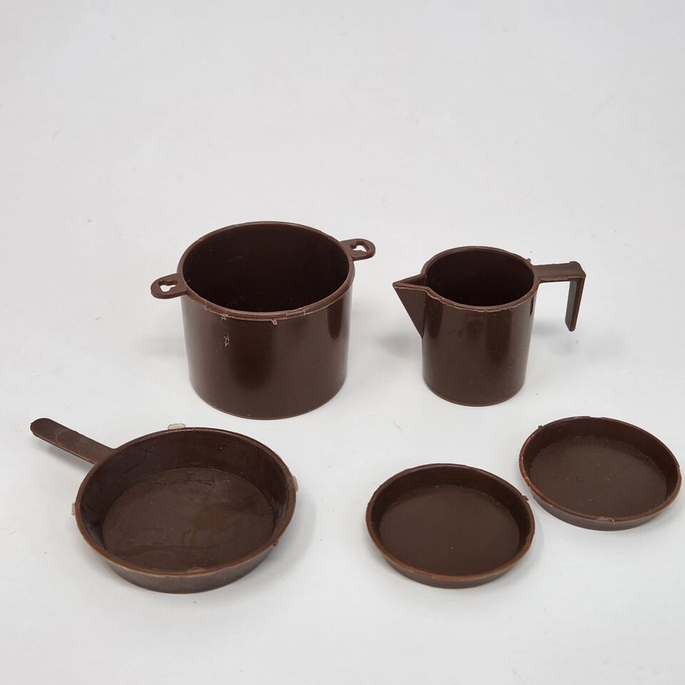 VINTAGE 1960's KEN / GI JOE / ACTION MAN REPLACEMENT BROWN CAMP PLATES PAN POT