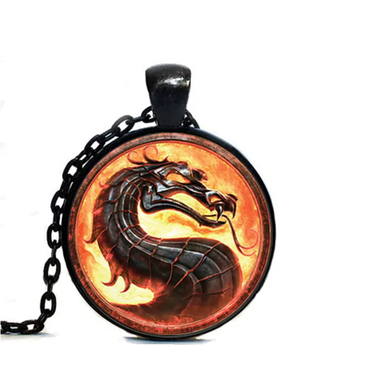 Vintage Mortal Kombat Glow in the Dark Glass Dome Dragon Pendant Necklace