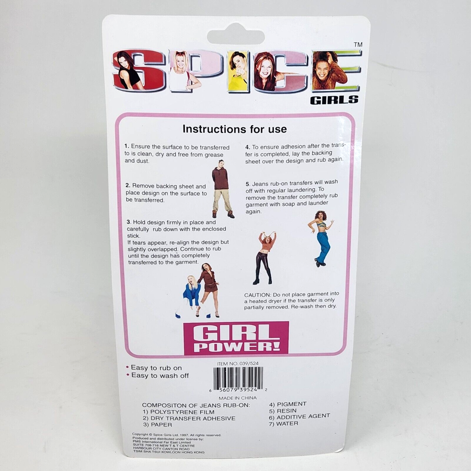 VINTAGE 1997 SPICE GIRLS JEANS / T SHIRTS / HATS RUB ON NEW IN PACKAGE SEALED
