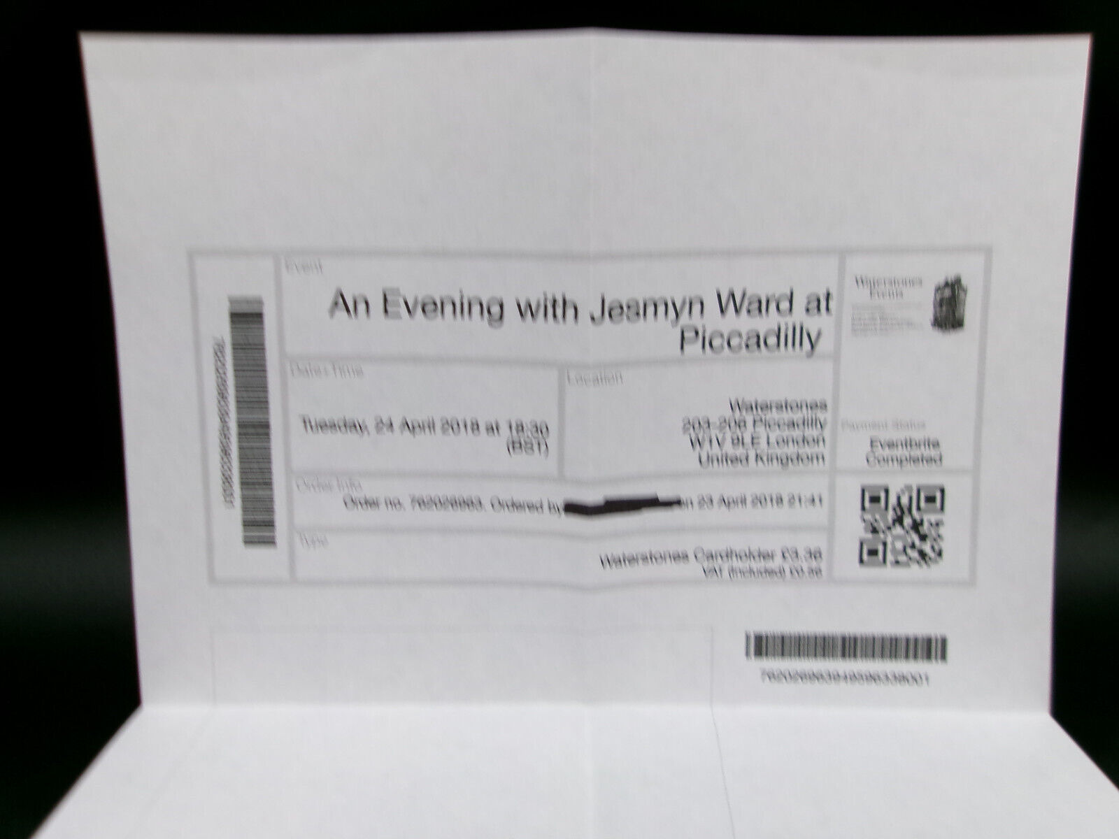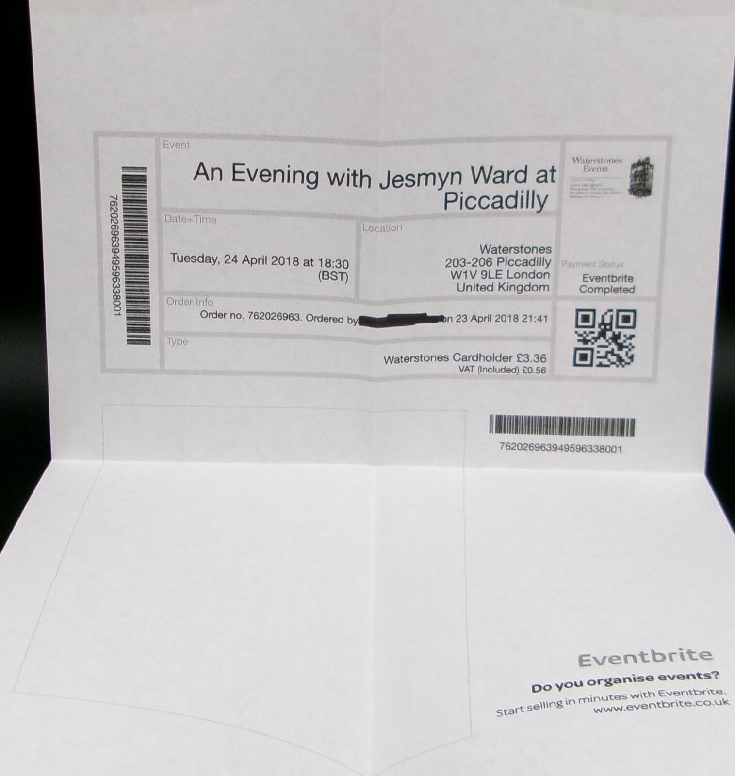 Laid in is a receipt for "An evening with Jesmyn Ward at Piccadilly, Tuesday, 24 April 2018".