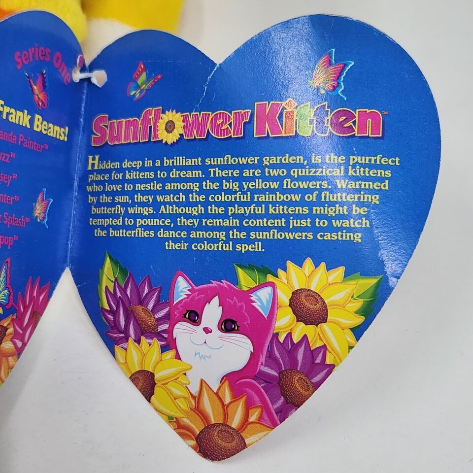 NEW VINTAGE 1998 LISA FRANK SUNFLOWER KITTEN BEANIE STUFFED ANIMAL PLUSH TOY TAG