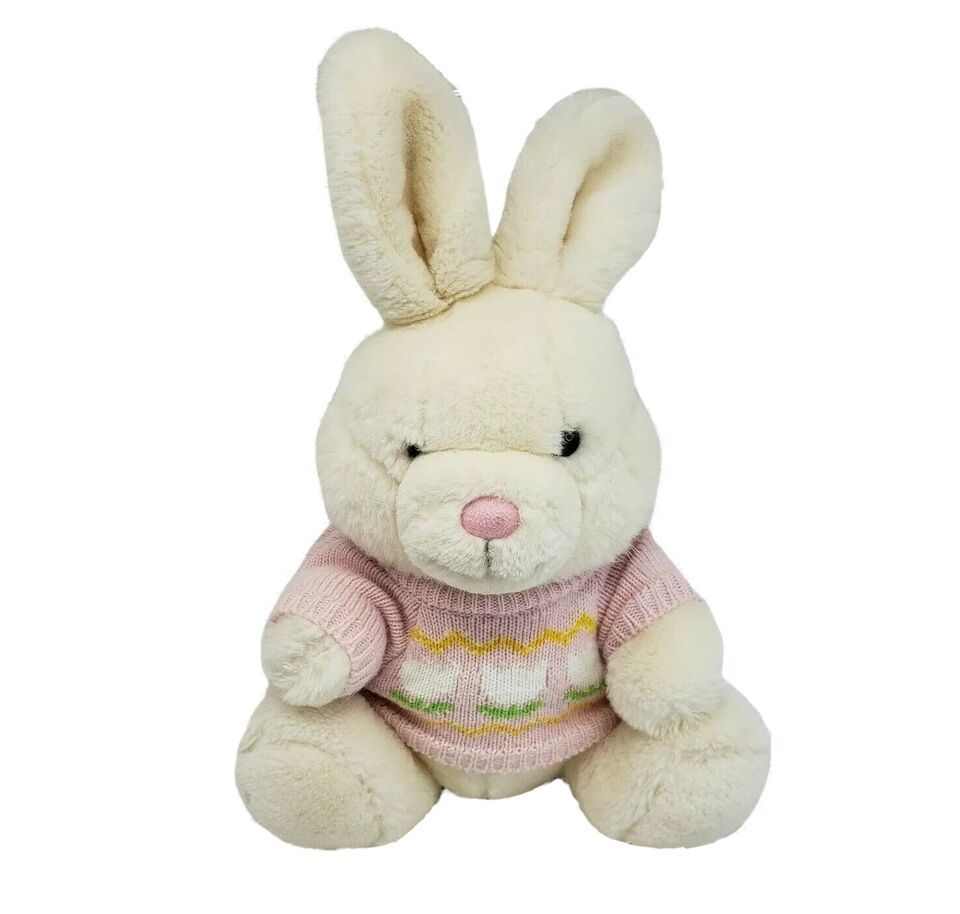 VINTAGE 1986 DAKIN SUNNY DAY BUNNY RABBIT PINK SWEATER STUFFED ANIMAL PLUSH TOY