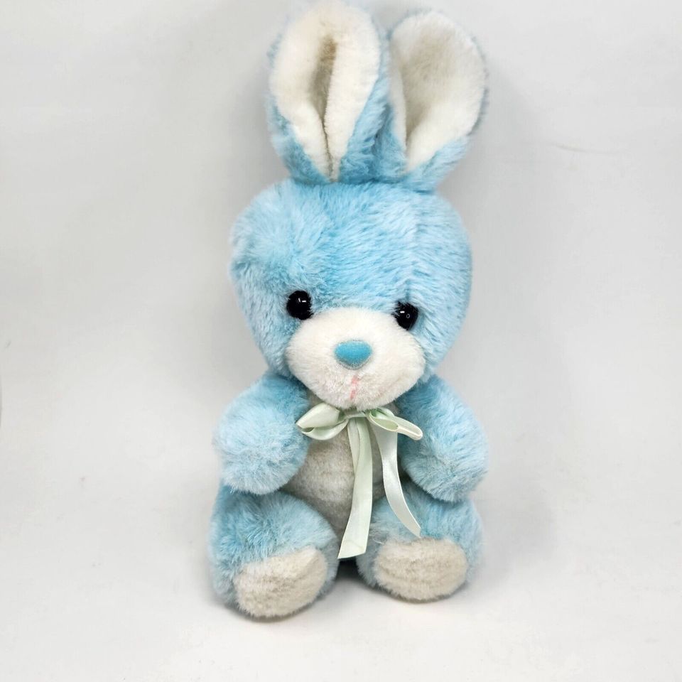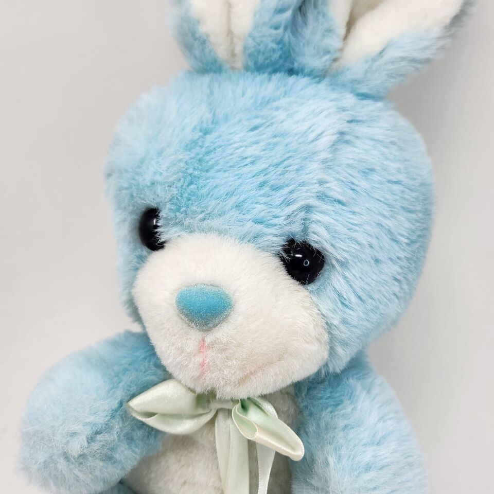 VINTAGE CUDDLE WIT BABY BLUE + WHITE BUNNY RABBIT STUFFED ANIMAL PLUSH TOY