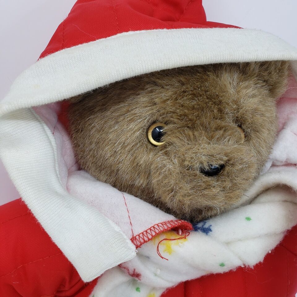 VINTAGE 1987 GRAPHICS INTERNATIONAL TEDDY BEAR RED NYLON STUFFED ANIMAL PLUSH