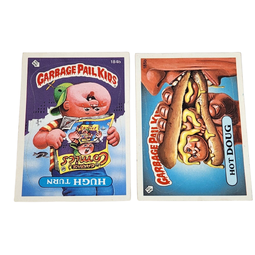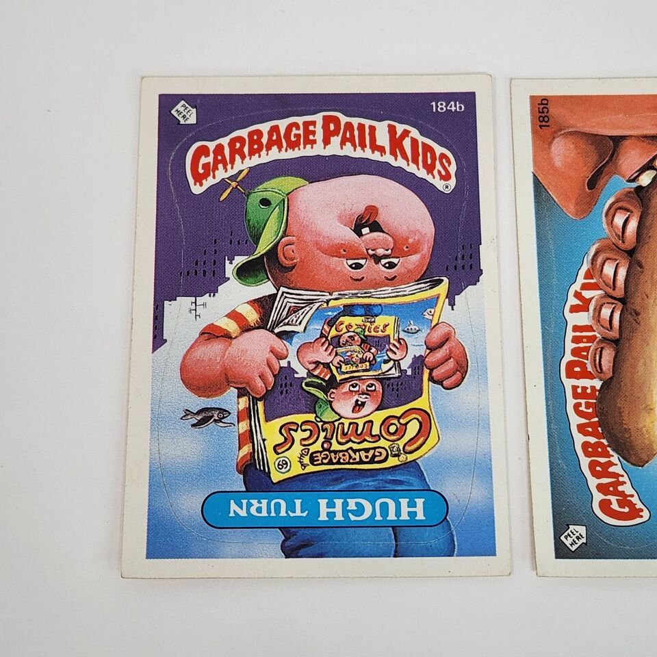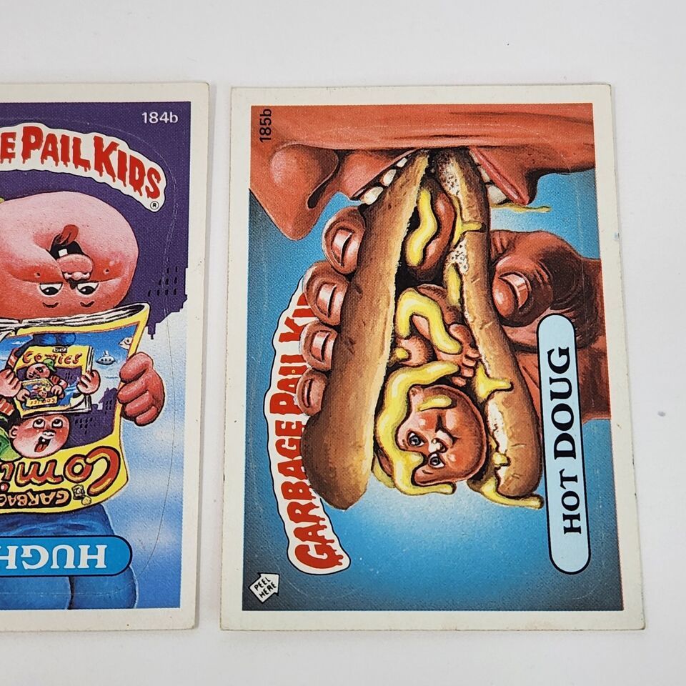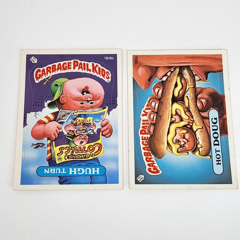 VINTAGE 1980's GARBAGE PAIL KIDS STICKER CARD 184b 185b HUGH TURN HOT DOUG