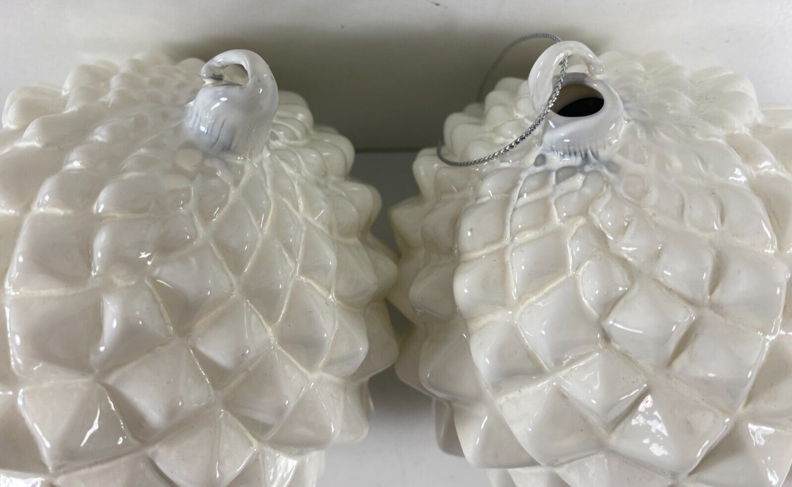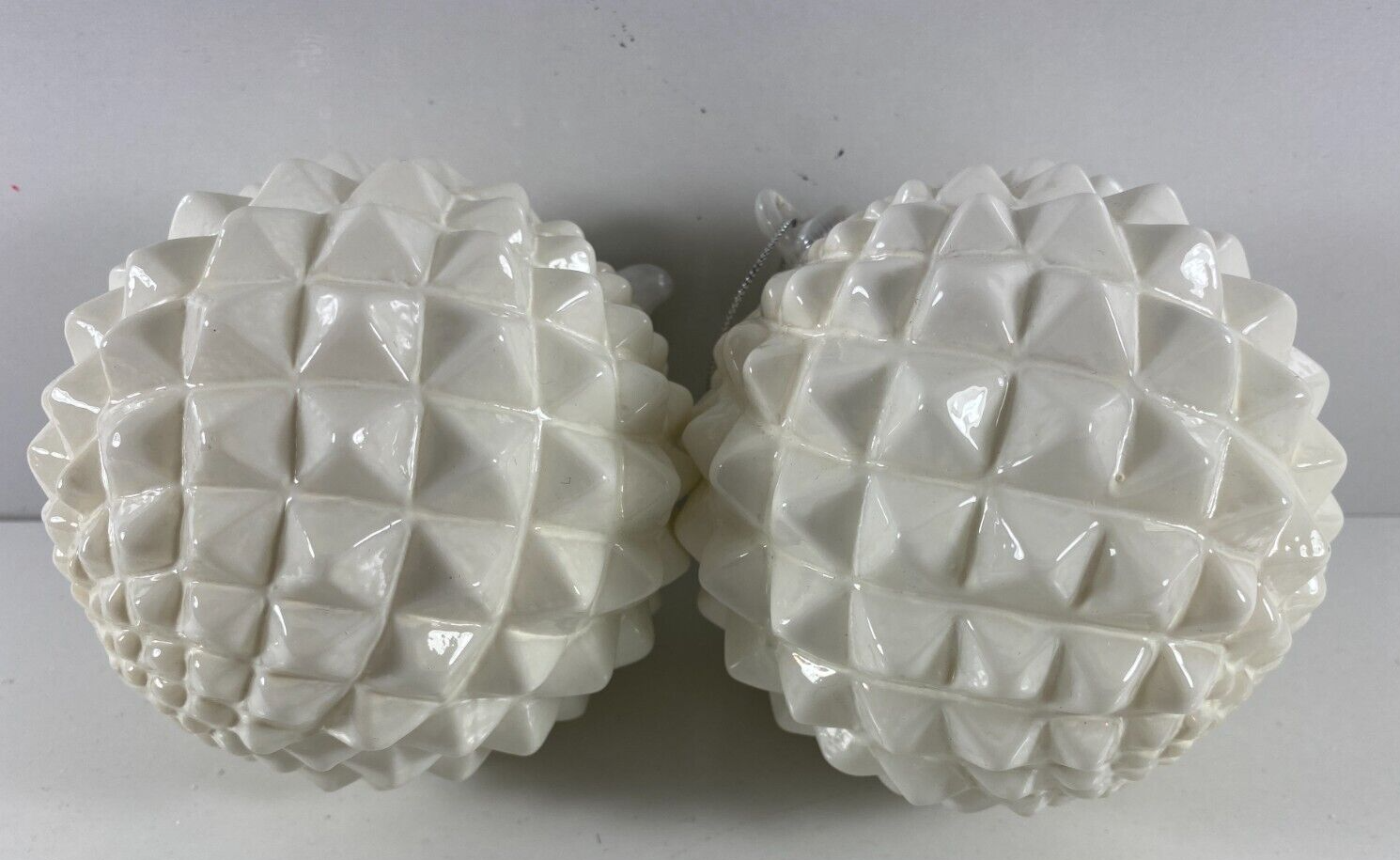 Lot of 2 White Pinecone Large 4.25 in Glass Ball Christmas Ornaments