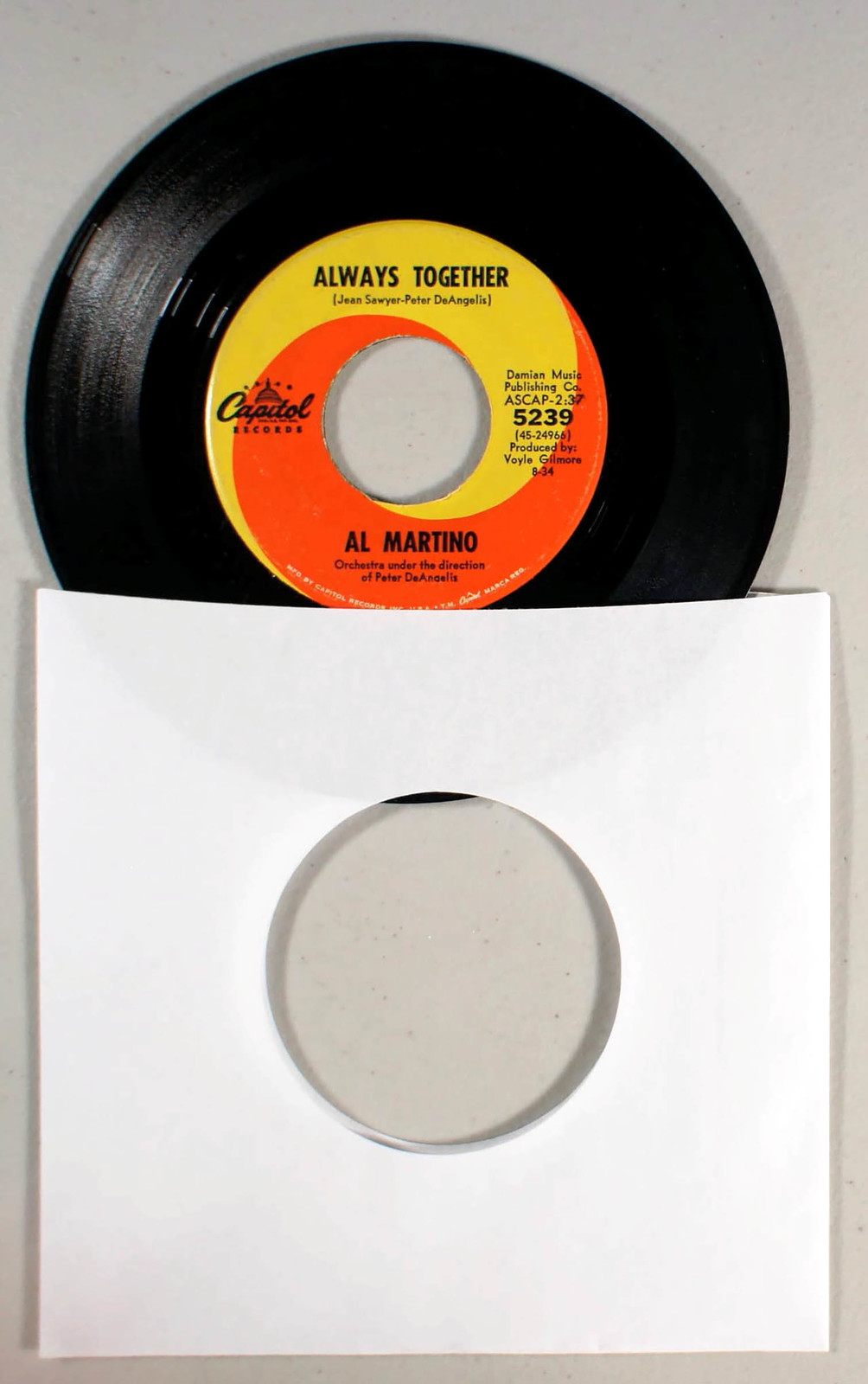 Always Together, by Al Martino, was released as a single from the album We Could. It is b/w the non-album track Thank You For Loving Me. Boasting a string of hit singles and LPs that stretched from the early 50s to the mid-'70s, Martino may be even better known for his role in The Godfather. He portrayed singer Johnny Fontane, a character supposedly based on Frank Sinatra but with eerie similarities to Martino's own career