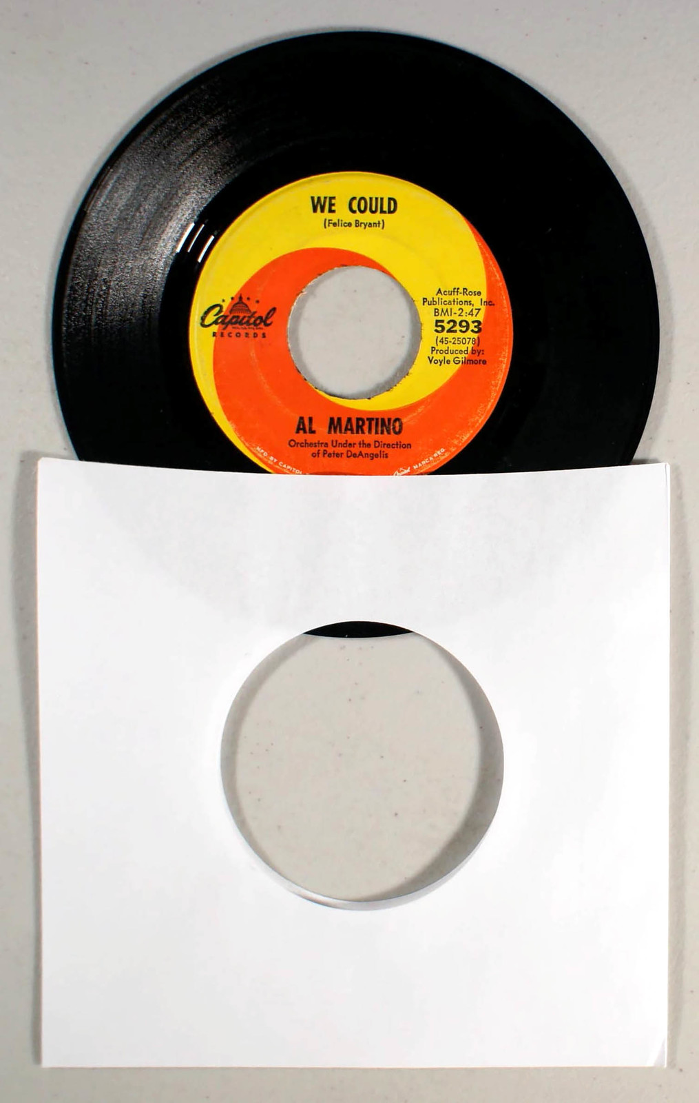 We Could, by Al Martino, was released single from the album of the same name. It was written by Felice Bryant and originally recorded by "Little" Jimmy Dickens. It's been recorded by numerous acts over the years, and American pop crooner Al Martino's version peaked at No. 41 on Hot 100 chart. Boasting a string of hit singles and LPs that stretched from the early 50s into the mid-'70s, Martino may be better known for his role in The Godfather. He portrayed singer Johnny Fontane, a character supposedly based on Frank Sinatra but with eerie similarities to Martino's own career.