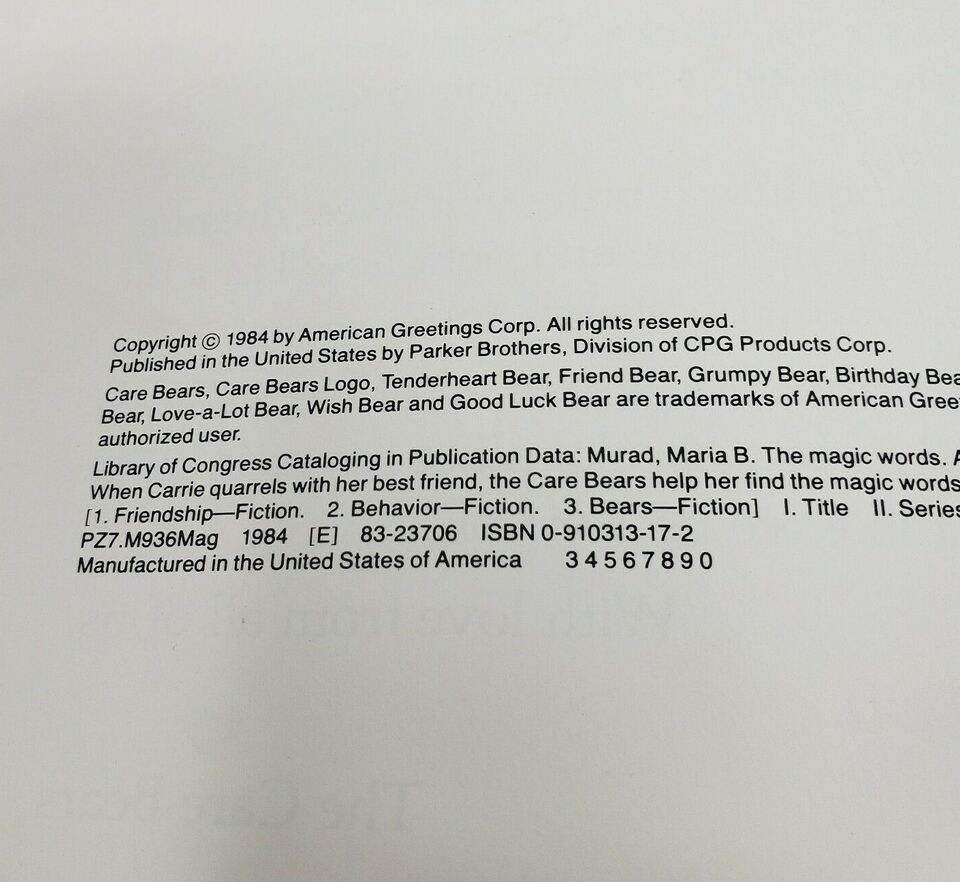 VINTAGE 1984 CARE BEARS THE MAGIC WORDS HARCOVER BOOK STORY PARKER BROTHERS
