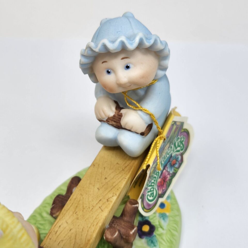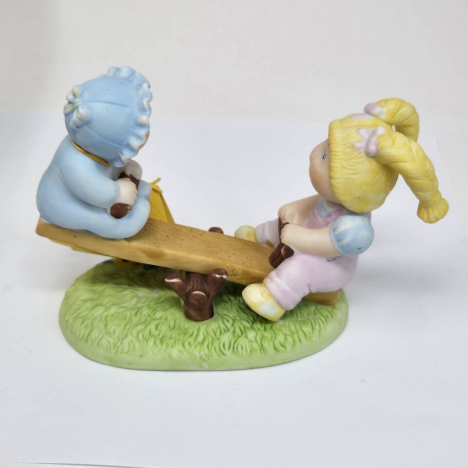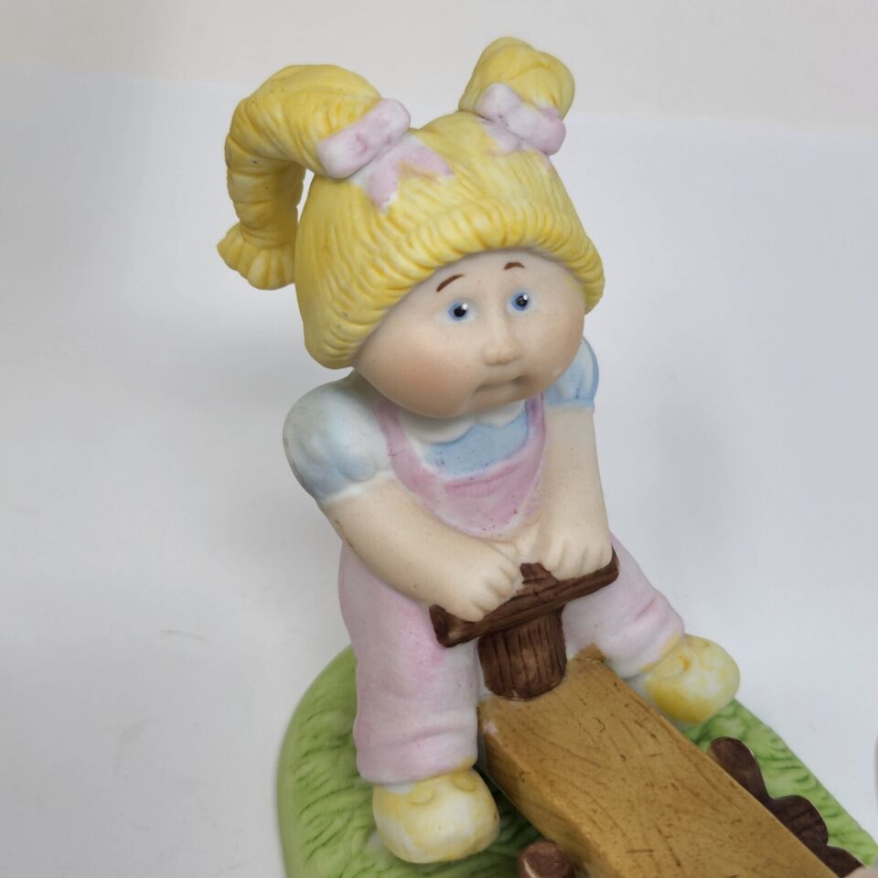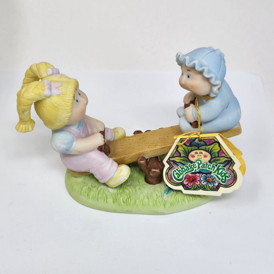 VINTAGE 1984 CABBAGE PATCH KIDS PORCELAIN FIGURINE GIRL + BABY ON TEETER TOTTER