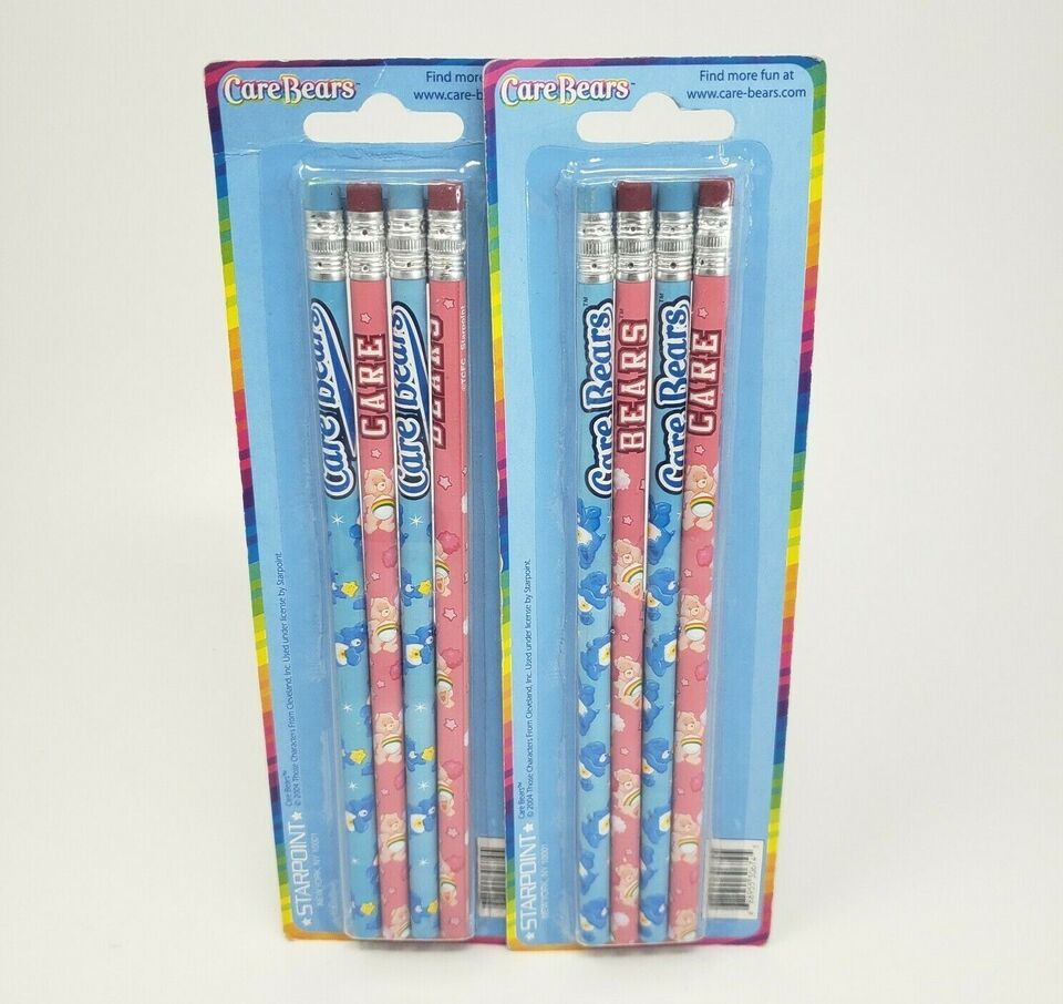 2 PACKAGES OF CARE BEARS PENCILS 2004 NEW IN PACKAGE 8 PENCILS TOTAL CHAMP CHEER