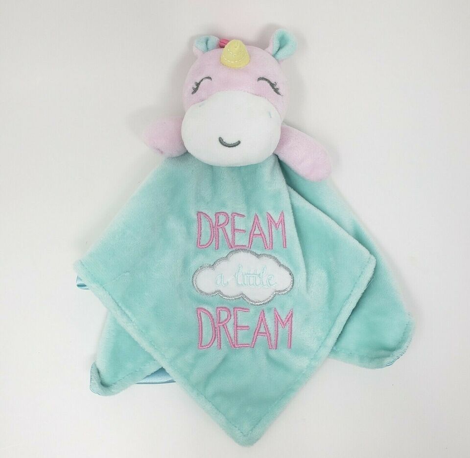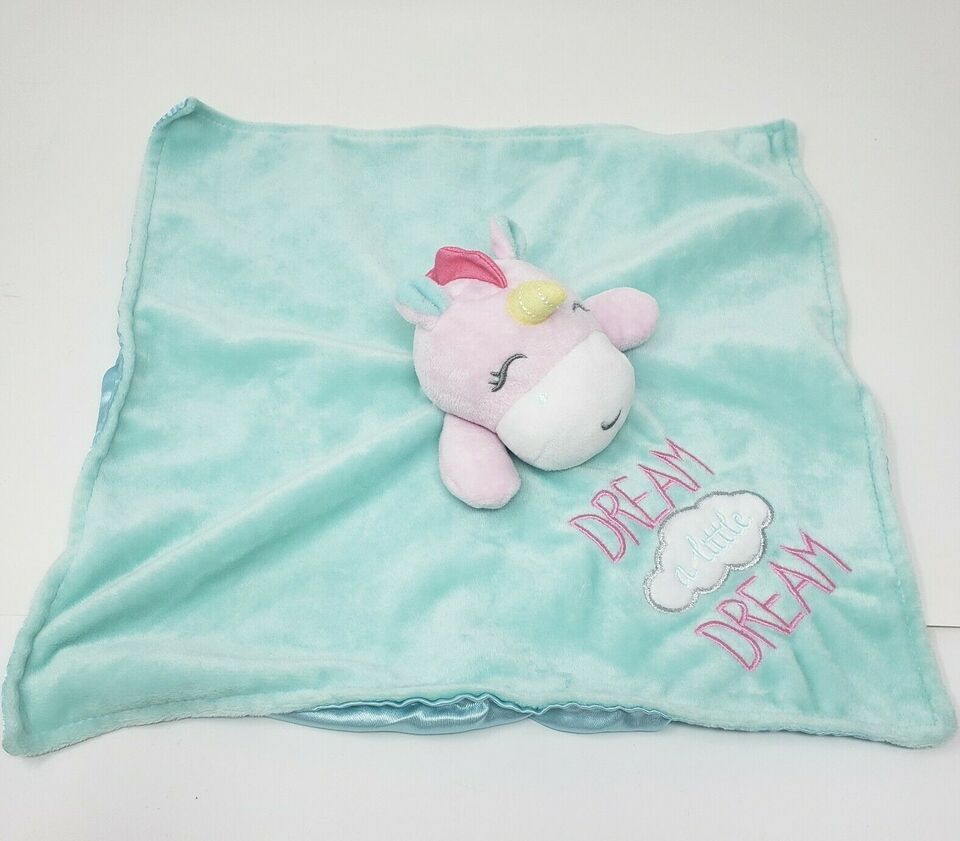 BABY STARTERS 2017 PINK UNICORN DREAM TEAL SECURITY BLANKET STUFFED ANIMAL PLUSH