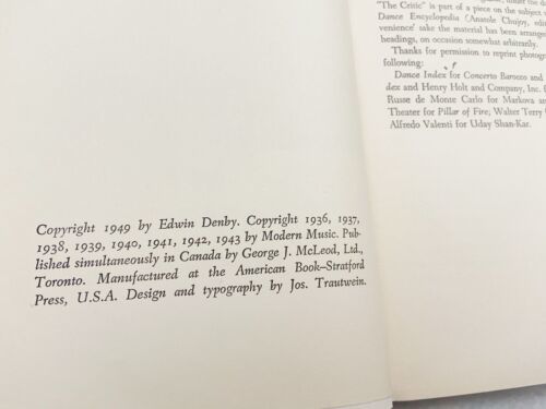 Denby, Edwin Looking At The Dance, HC 1949 and 12 similar items