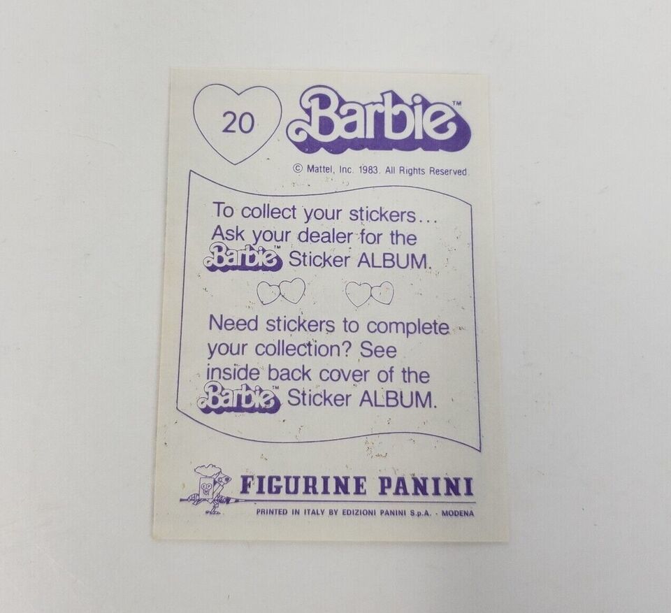 VINTAGE 1983 MATTEL FIGURINE PANINI BARBIE ALBUM STICKER NOS NEW OLD STOCK # 20