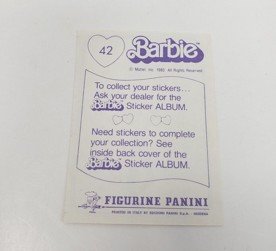 VINTAGE 1983 MATTEL FIGURINE PANINI BARBIE ALBUM STICKER NOS NEW OLD STOCK # 42
