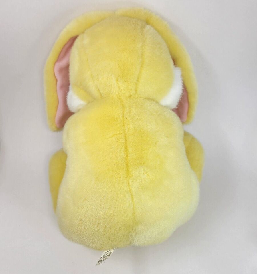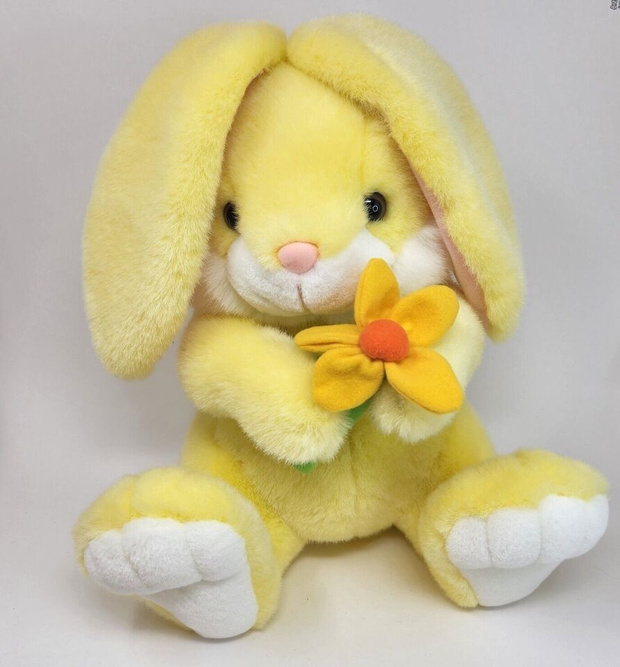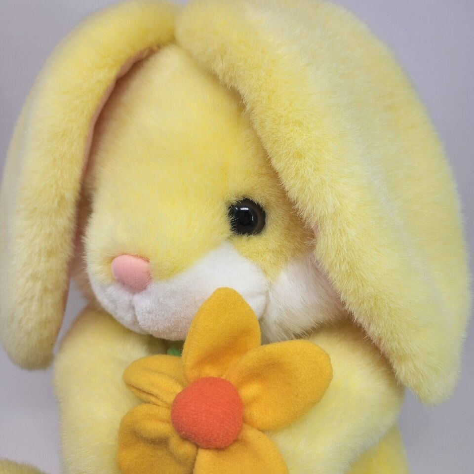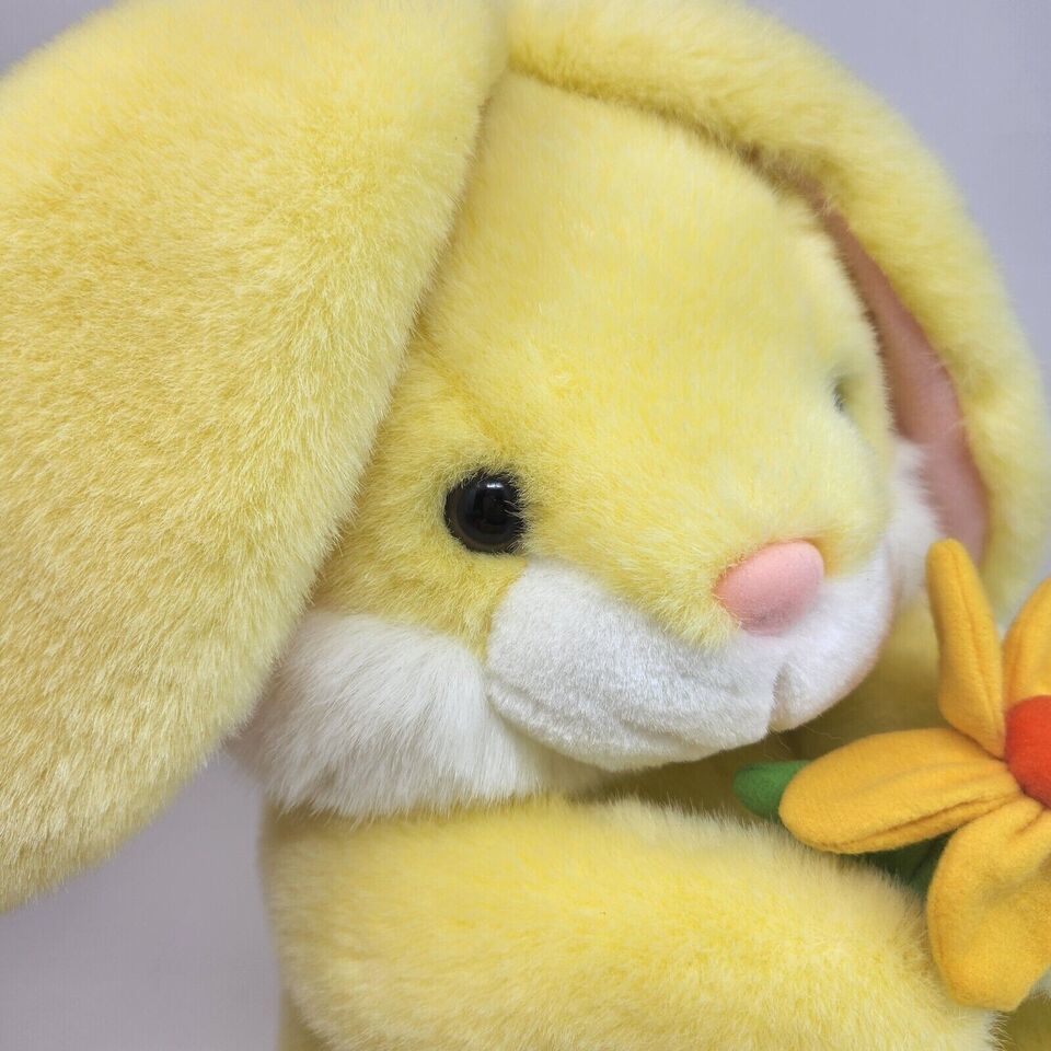 13" VINTAGE CHOSUN YELLOW + WHITE BUNNY RABBIT W FLOWER STUFFED ANIMAL PLUSH TOY