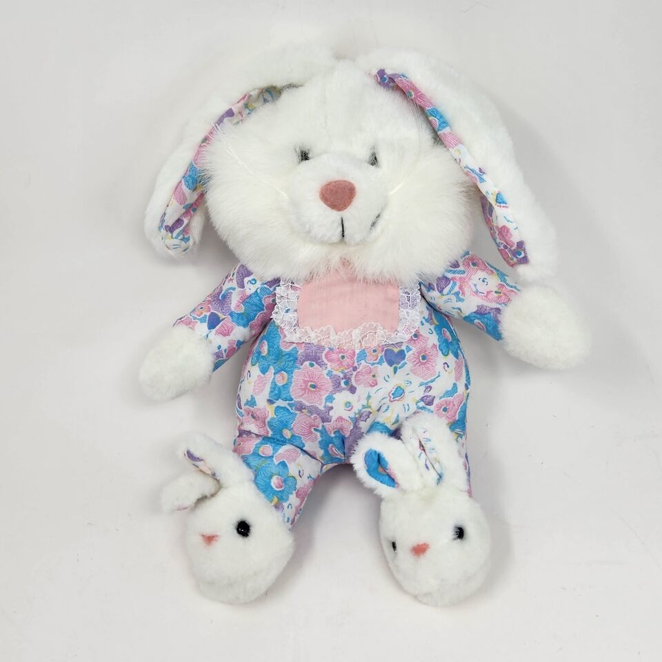 13" VINTAGE WIDE WAY INC BUNNY RABBIT W SLIPPERS STUFFED ANIMAL PLUSH TOY