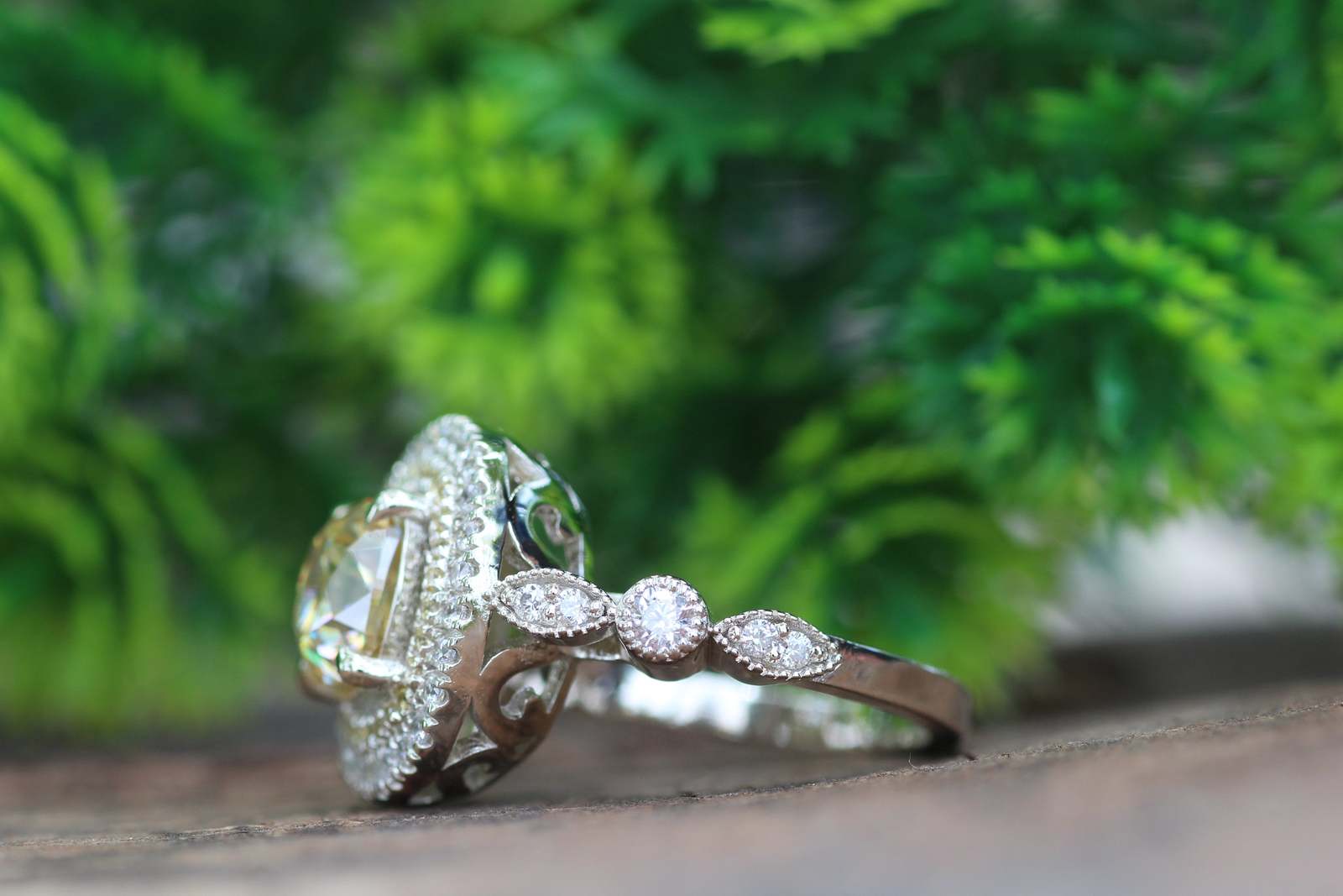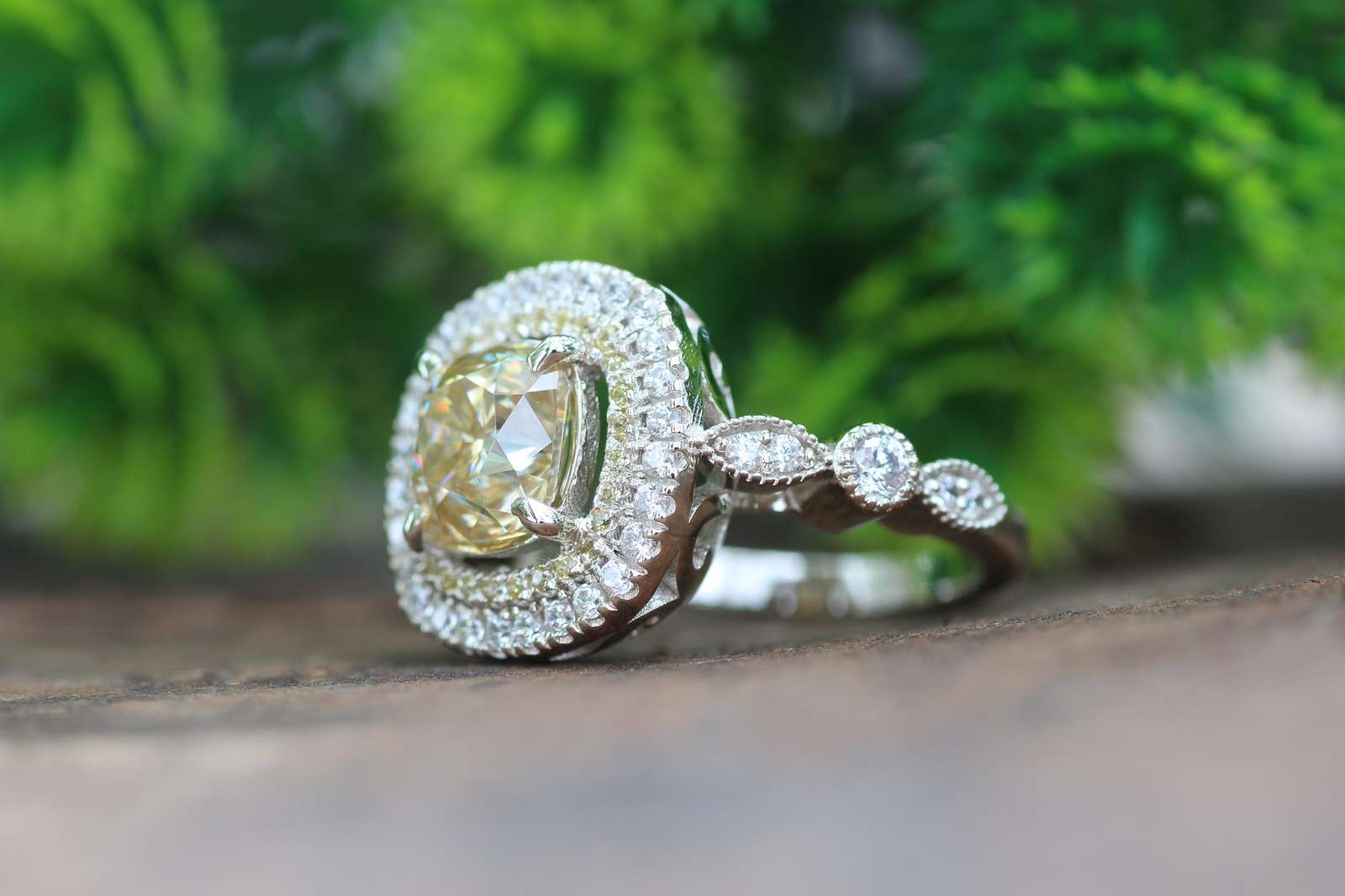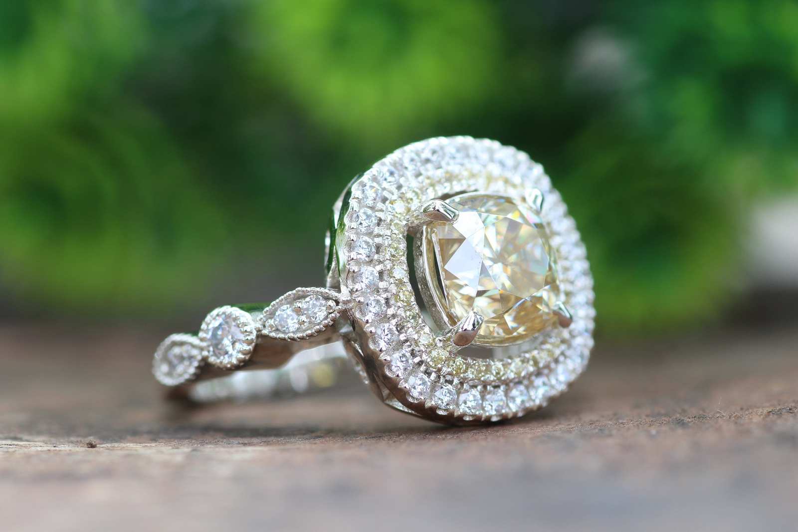 1.5CT Cushion Cut Yellow Diamond Engagement Ring,14k White Gold Halo Bridal Ring