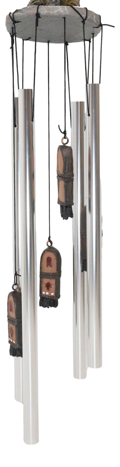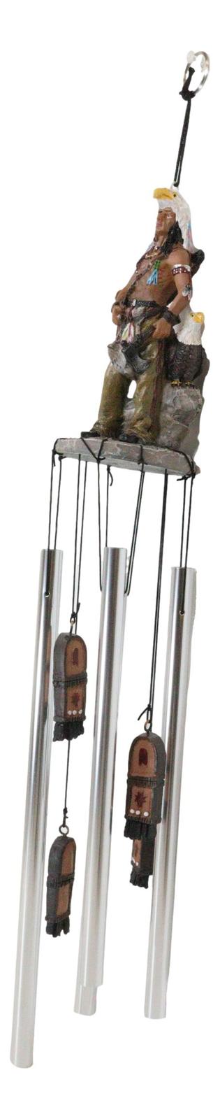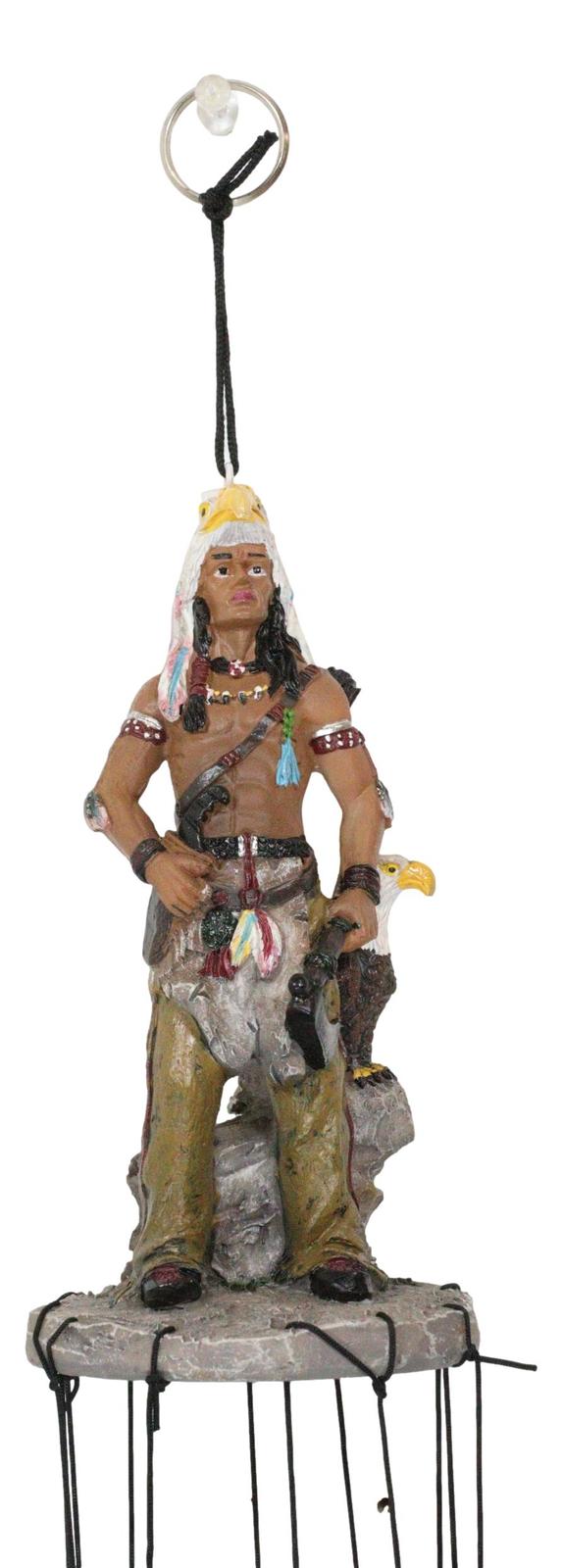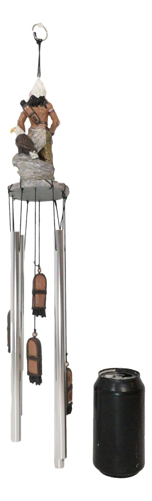 ? This Southwestern Indian Chief With Bald Eagle Wind Chime is made of resin and painted aluminum, hand painted and polished individually.