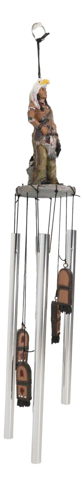 Southwestern Tribal Indian Chief With Eagle Roach Headdress And Axe Wind Chime