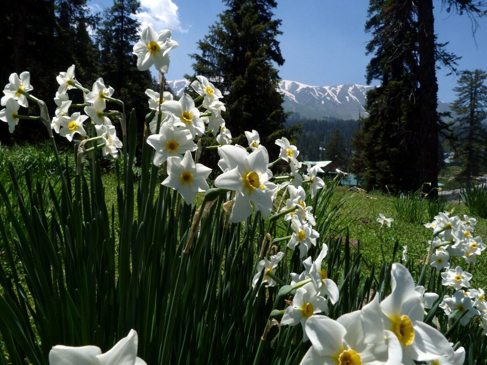 Nargis flowers (Poet's daffodil) blooming at Gulmarg Azad Kashmir