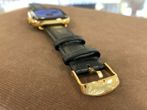 - 41mm Apple Watch SERIES 9 24K Gold Plated with Black Alligator Leather Band with 24K Gold Plated Buckle