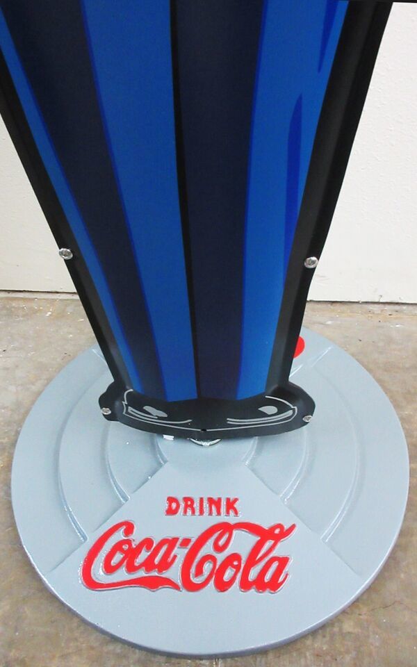 Measures 64" tall by 30" wide on cast embossed 21" round metal base