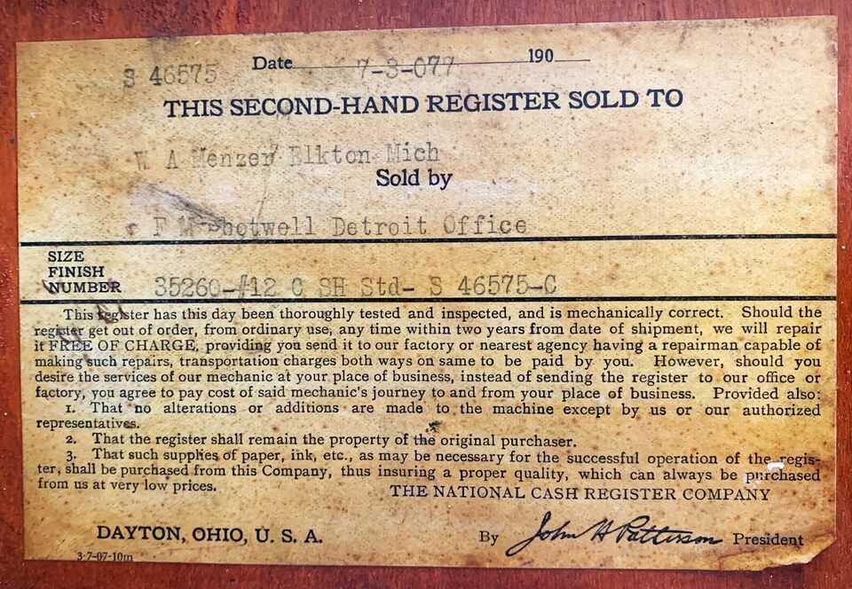 National Cash Register Model #12 Cash and similar items